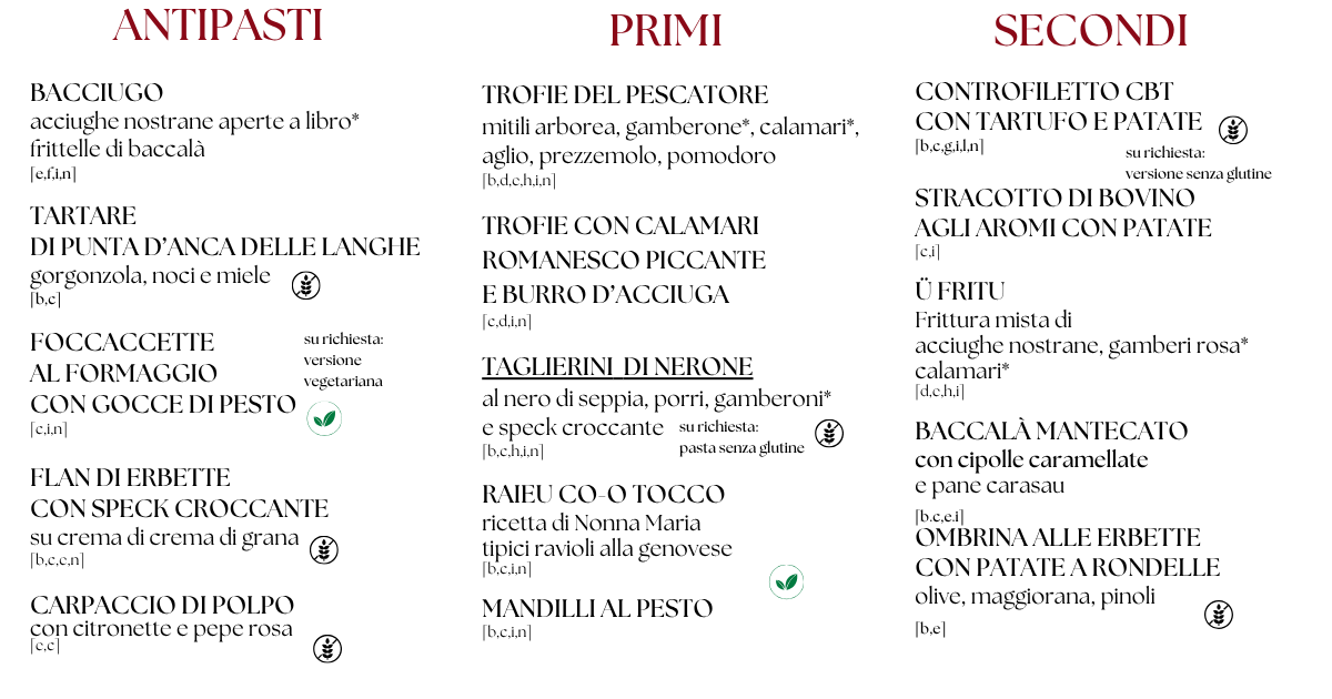 INCLUSO: ACQUA, COPERTO, 1/4 DI VINO O 1 CALICE